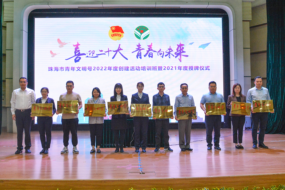 2022年3月14日,“喜迎二十大·青春向未來”2022年度珠海市青年文明號創建活動培訓班暨2021年度珠海市青年文明號授牌儀式在市青少年婦女兒童活動中心舉辦。
